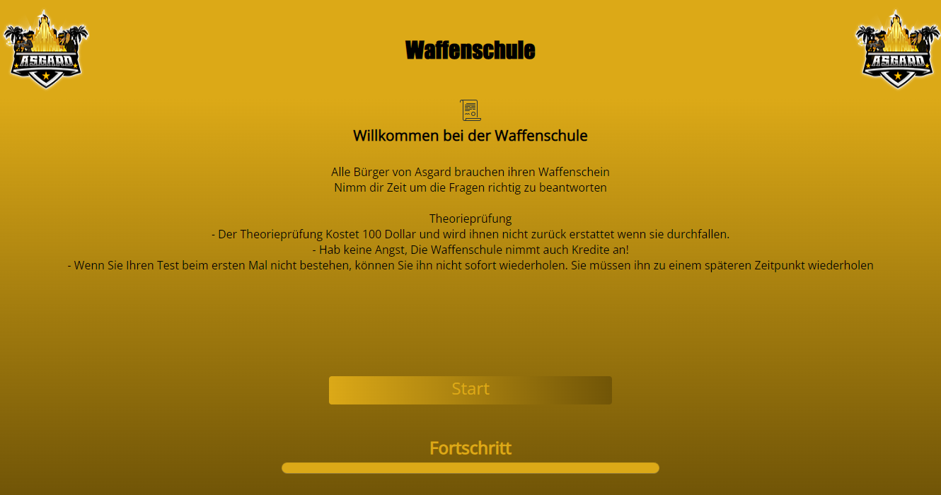 Sollte die Polizei dich ohne einen Waffenschein erwischen, hast du ein dickes Problem! Also gehe zur Waffenschule (PLZ: 200) und mach deinen Schein! Ohne Schein ist es nicht möglich, in Waffenläden etwas zu kaufen! Um den Waffenschein zu bekommen, muss man die T heorie-Prüfung ablegen, dort werden dir dann Fragen gestellt. Sobald du die bestanden hast, kannst du legal eine Waffe erwerben!